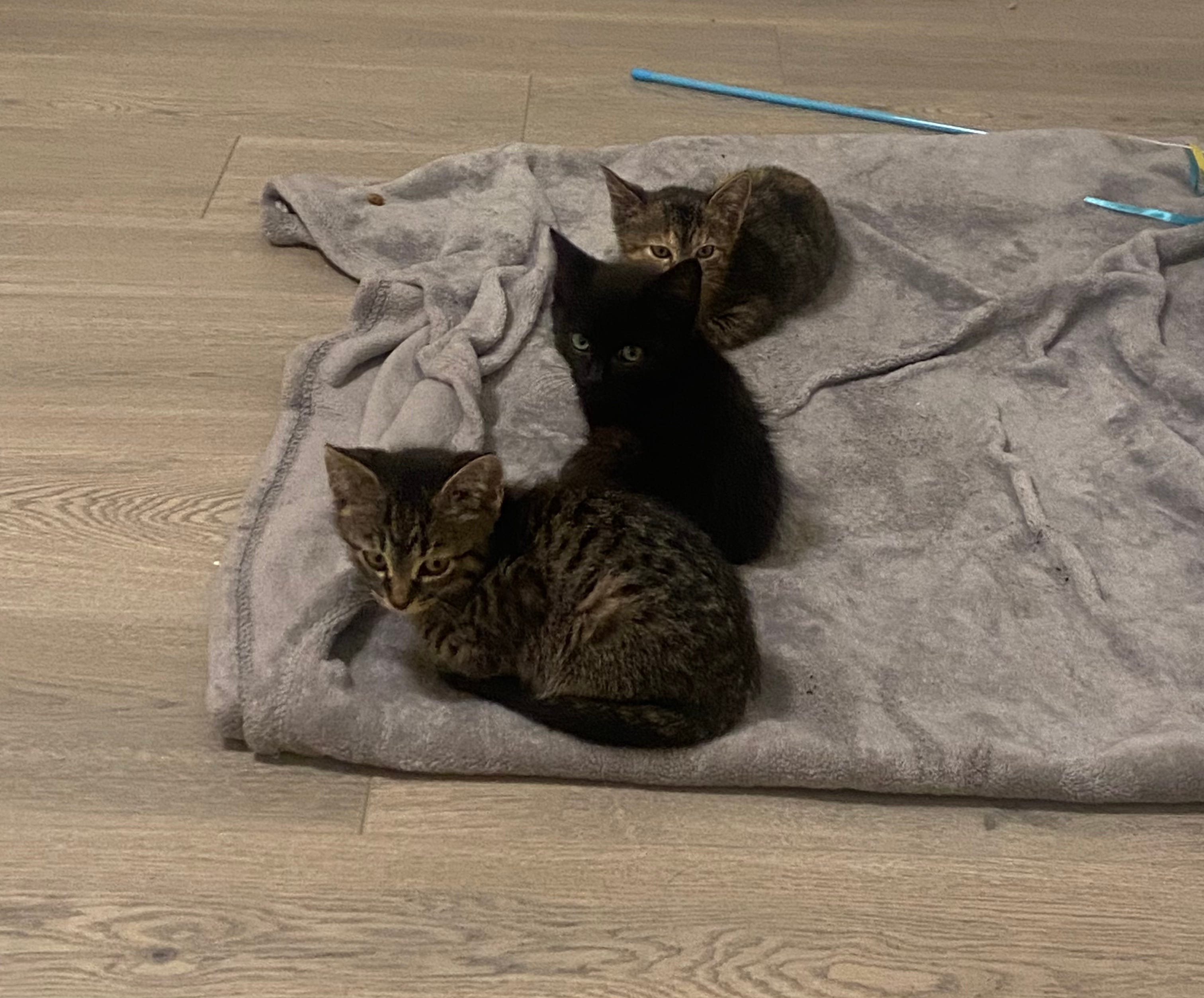 Each of the three kittens is a different color, diversity is beautiful 😻